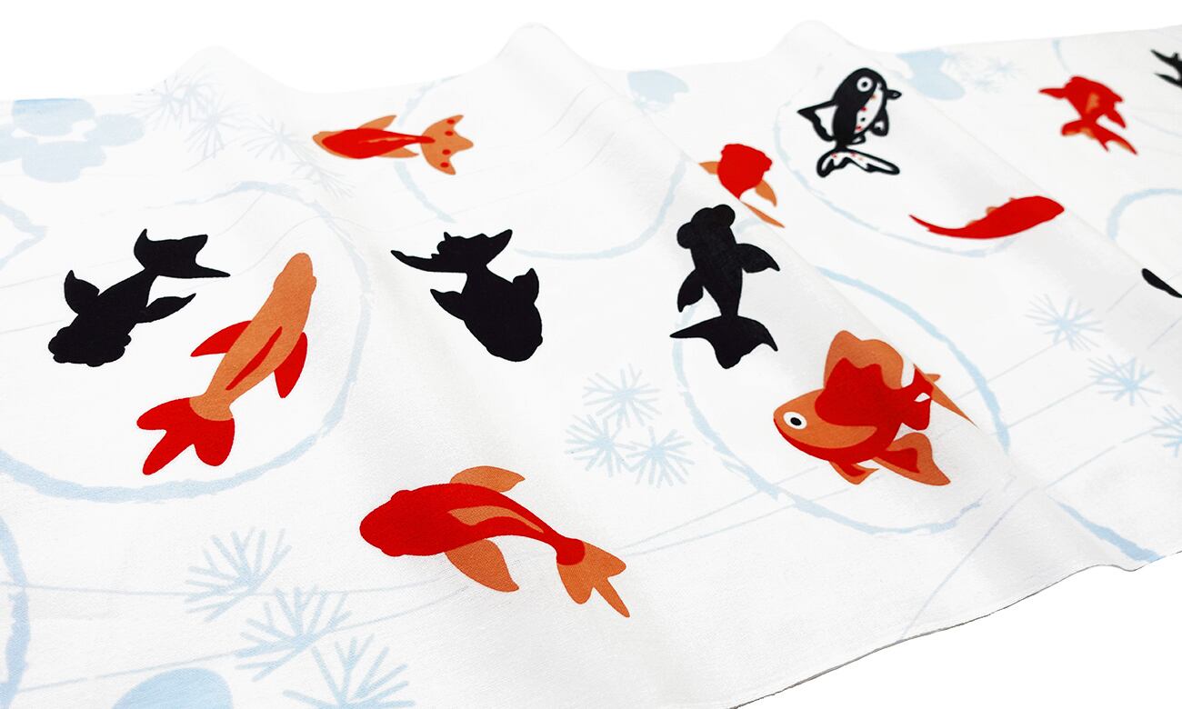横位置の金魚柄手ぬぐいとして、