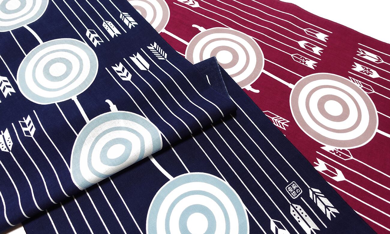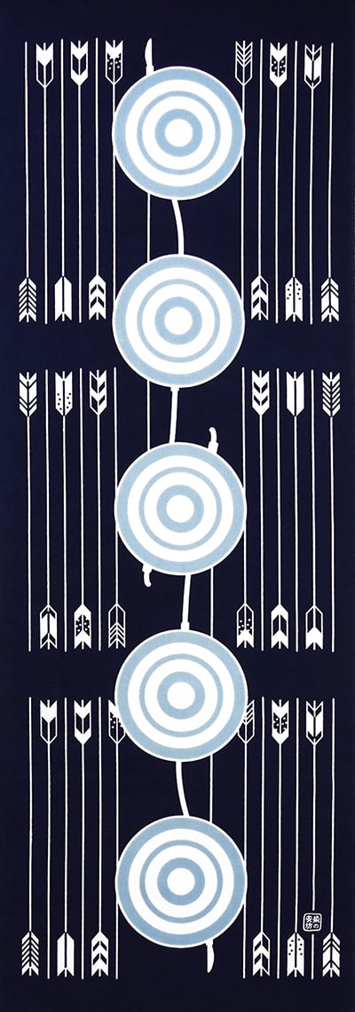 弓道の主な道具である弓、矢、的をデザインした手ぬぐいです。