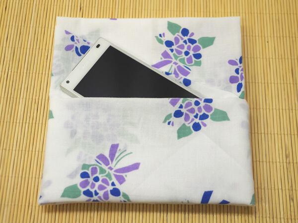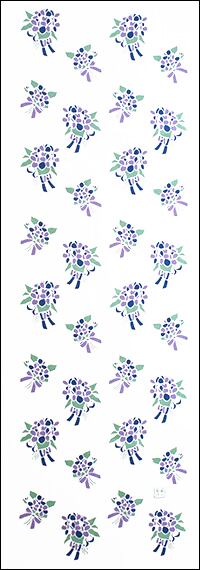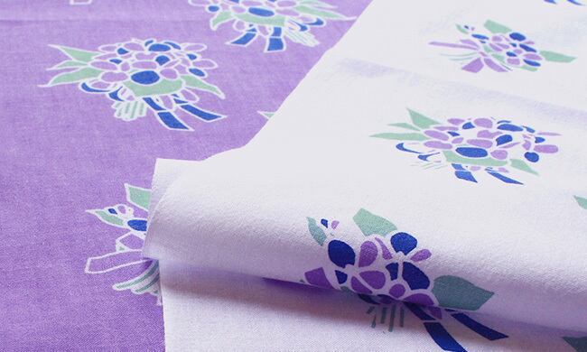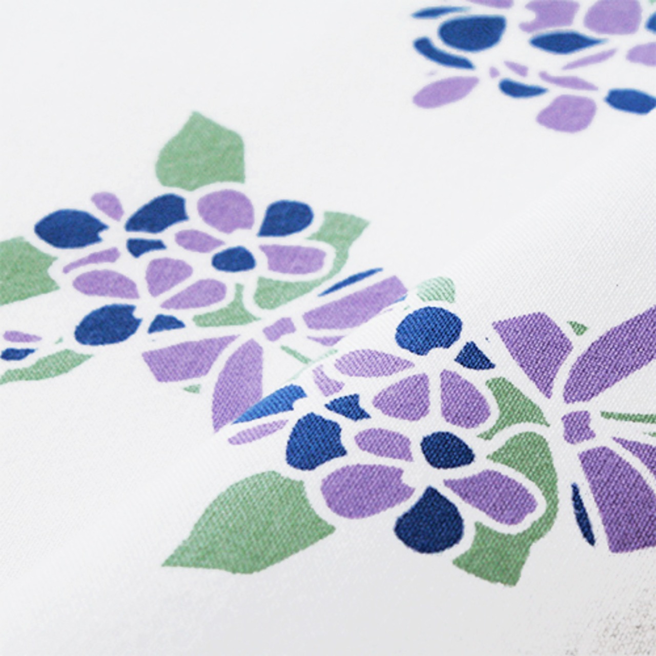 手ぬぐい上に大小のすみれのブーケを配置し、