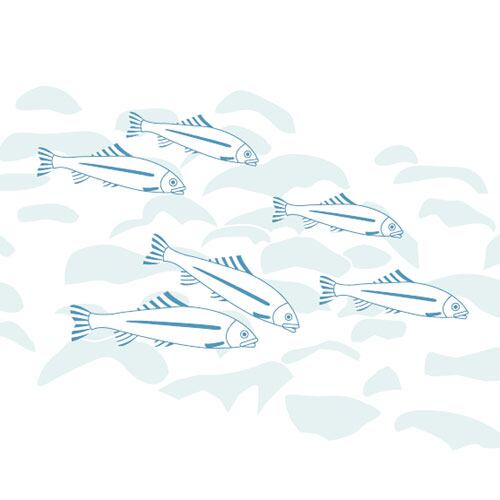 川の中でゆったりと群れて泳ぐ様子を、