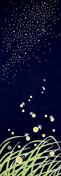 ホタルの舞う夏の星空を描きました。