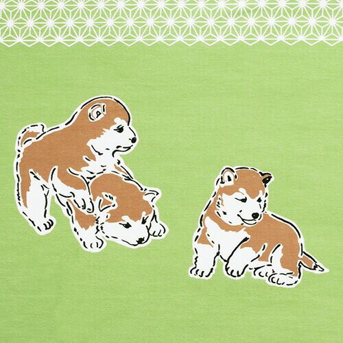 手ぬぐい「子犬ころころ 苗色」