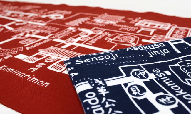 手ぬぐい「浅草地図 べんがら色」
