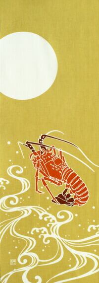 縁起の良い伊勢海老が海上に跳ね上がっています。
