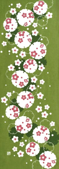 手ぬぐい「梅雪輪 緑」
