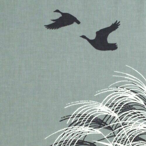 その薄野原の空日、渡っていく水鳥の陰が