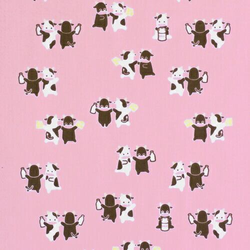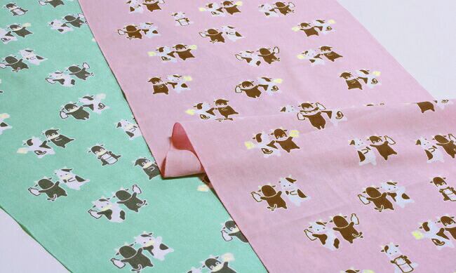 手ぬぐい「牧場のパーティー ミルキーピンク」