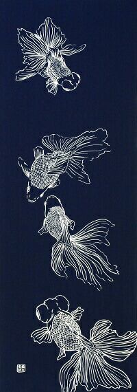 優雅に泳ぐ琉金を大胆に、そして繊細に描きました。
