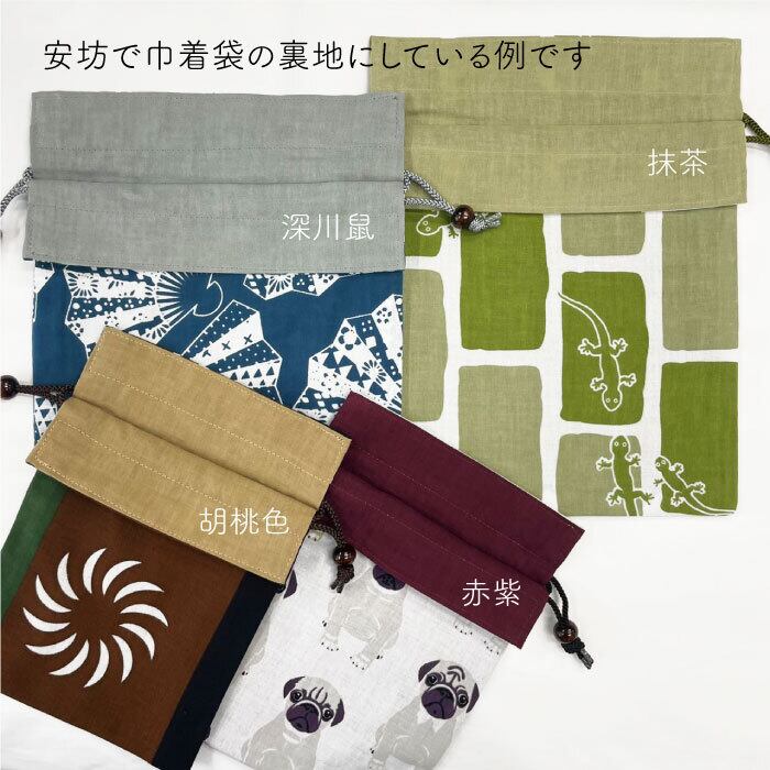 手ぬぐい巾着の裏地に使用するために染めている色無地なので