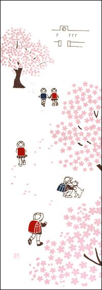入学式、初めて学校に行く日を手ぬぐいで表現しました。