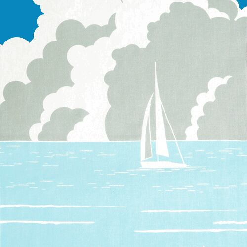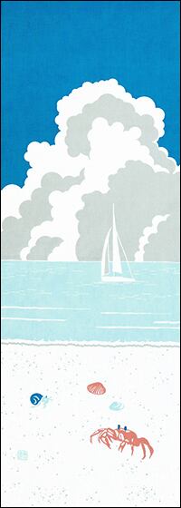 濃い青の空にもくもくと白い入道雲、海にはヨット、