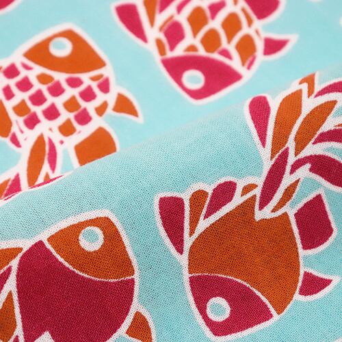 夏の楽しい雰囲気が感じられるような金魚柄を考えました。