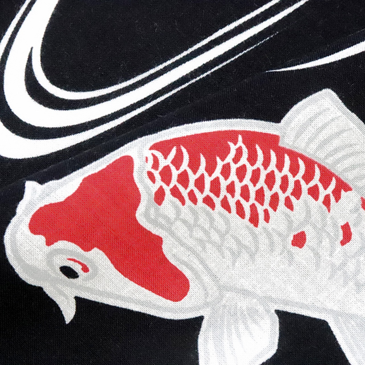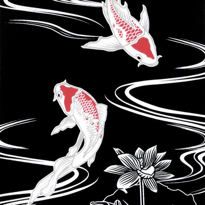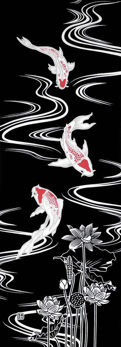 水の中をゆったりと泳ぐ錦鯉に蓮を配置し、