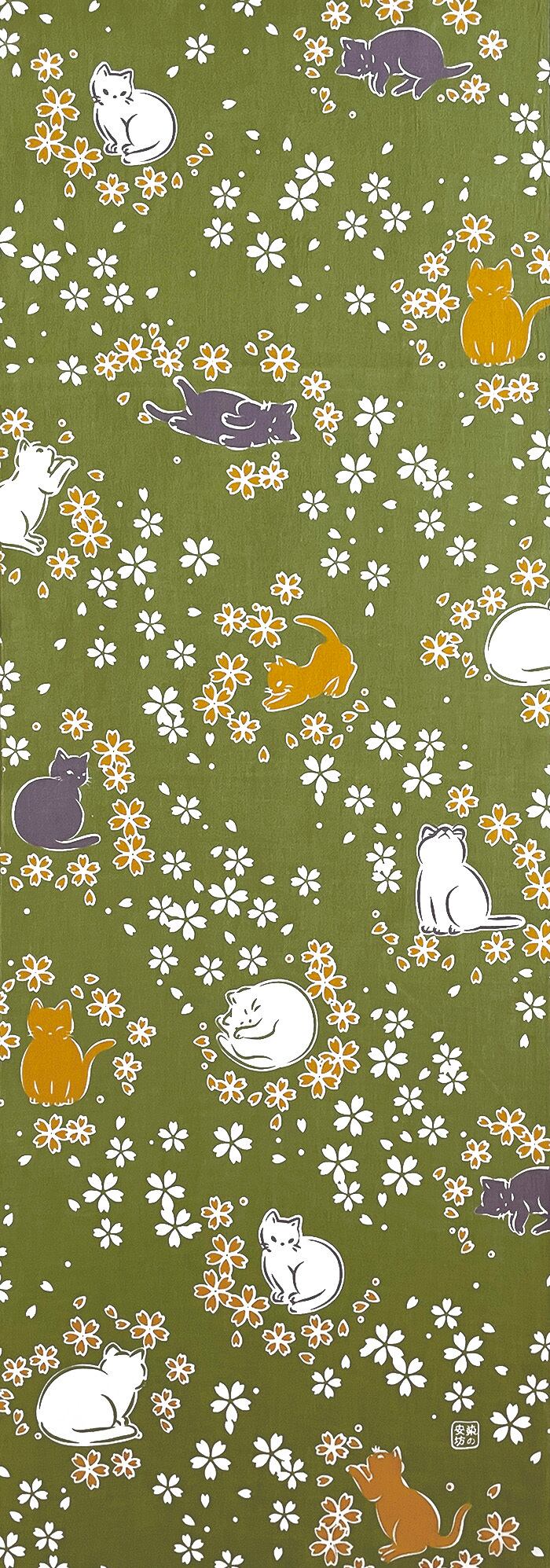 手ぬぐい「さくらねこ 抹茶」