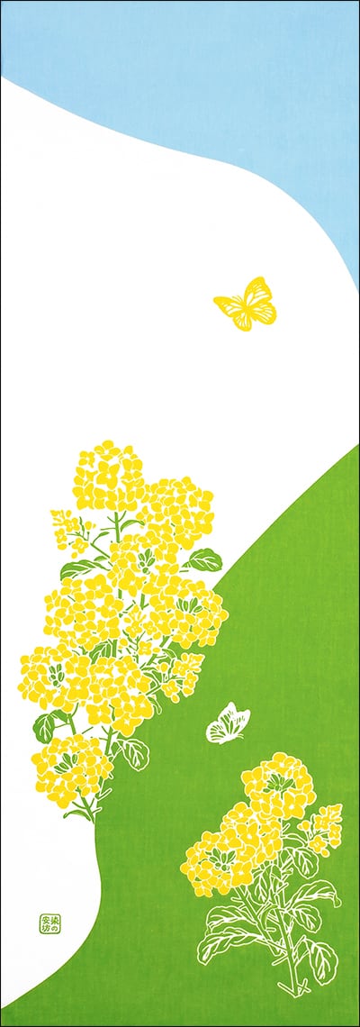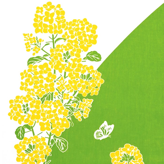 抜けるような青空と鮮やかな黄緑色の配色で、